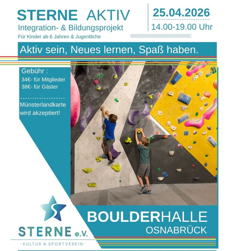 Gemeinsam fahren wir mit dem Bus von Greven nach Osnabrück in eine moderne Boulderhalle. Vor Ort erwartet die Teilnehmer ein 2-stündiges betreutes Training mit erfahrenen Trainern – ideal auch für Anfänger. Alle Übungen werden erklärt und begleitet, sodass jeder sicher mitmachen kann.
