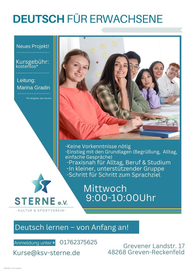 Unser neuer Deutschkurs richtet sich an Erwachsene, die keine oder nur sehr geringe Deutschkenntnisse haben.