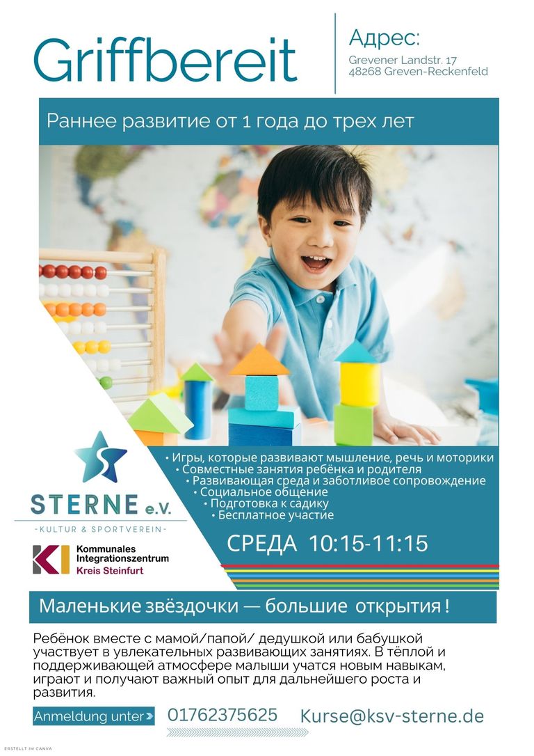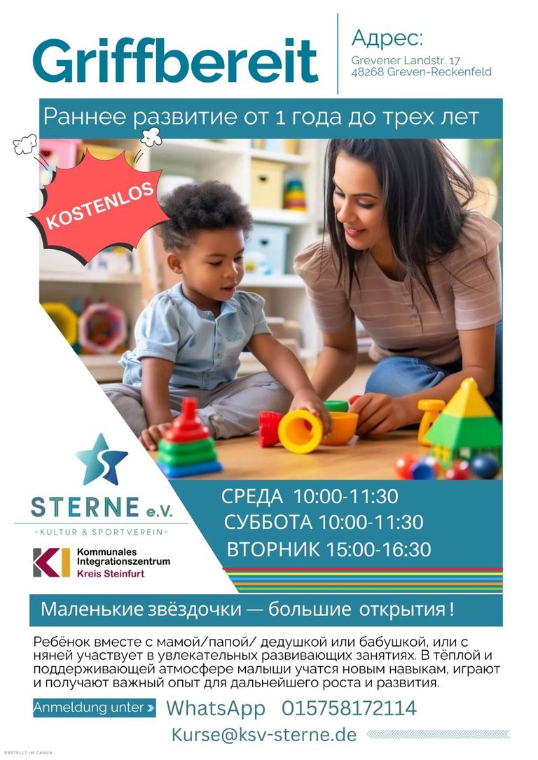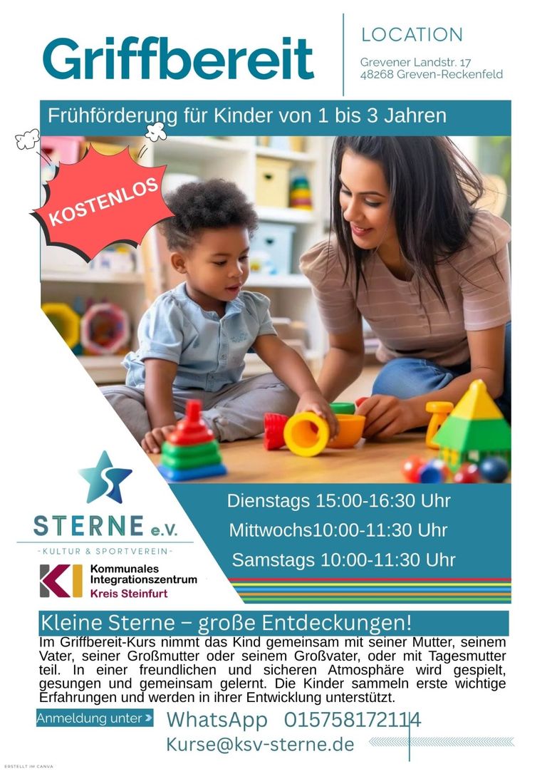 Mit Unterstützung der Kommunalen Integration Kreis Steinfurt starten wir unser neues Angebot „Griffbereit“ für Familien mit kleinen Kindern im Alter von 1 bis 3 Jahren.
