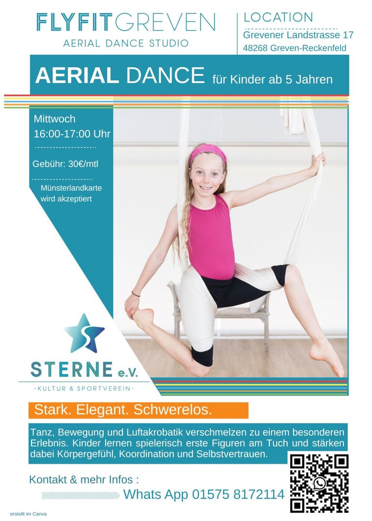 In unserem neuen Aerial Dance-Kurs entdecken Kinder spielerisch die Welt des Tanzes – schwebend, drehend und kletternd am Aerial-Tuch. Dabei werden Körpergefühl, Koordination, Selbstvertrauen und Kreativität auf besondere Weise gefördert.