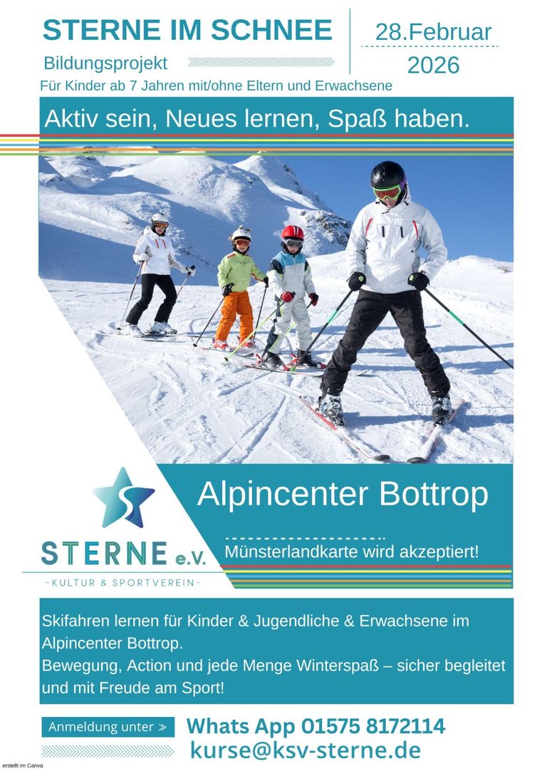 Im Rahmen unseres Integrationsprojekts freuen wir uns, euch unseren Winter-Ausflug in die Skihalle Bottrop anzukündigen!