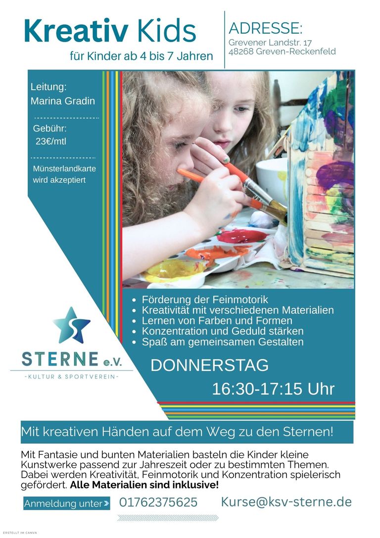 Mit bunten Materialien und jeder Menge Spaß werden Kreativität, Feinmotorik, Konzentration spielerisch gefördert.
