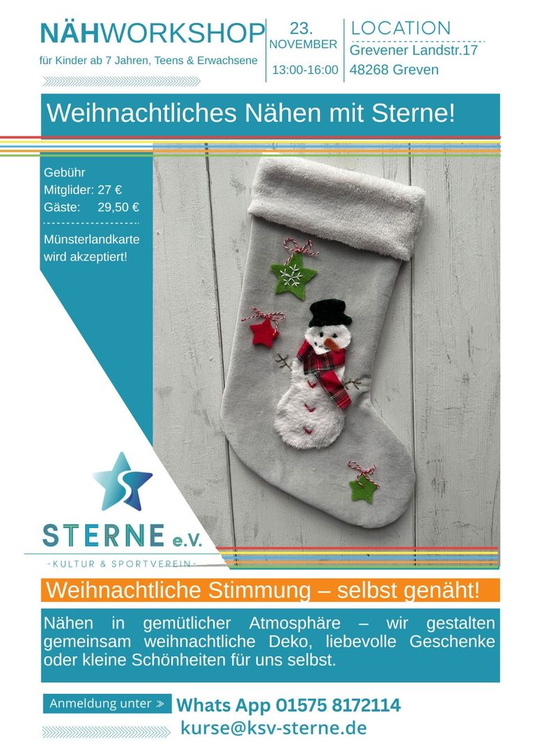 In gemütlicher, vorweihnachtlicher Atmosphäre nähen wir gemeinsam kleine Geschenke oder festliche Dekorationen – zum Verschenken oder um sich selbst eine Freude zu machen.