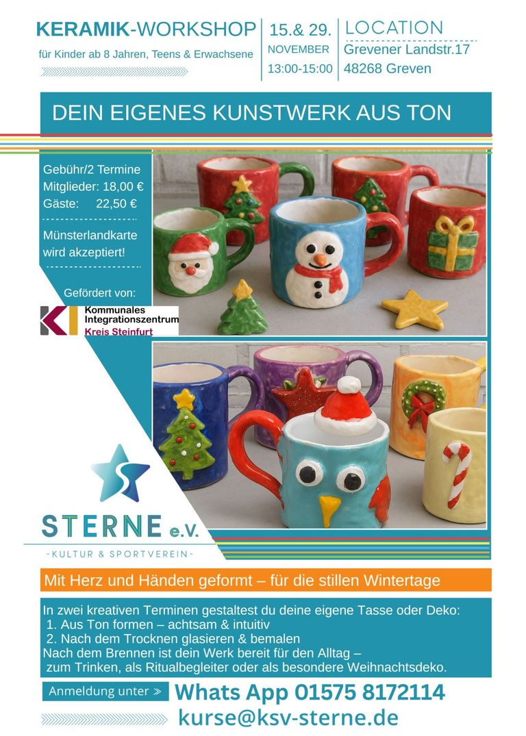 In unserem gemütlichen Keramik-Workshop gestaltest du dein ganz persönliches Kunstwerk – voller Herz, Wärme und Weihnachtszauber.